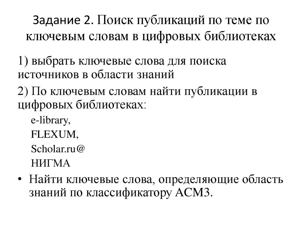 Задание 2. Поиск публикаций по теме поключевым словам в цифровых библиотеках