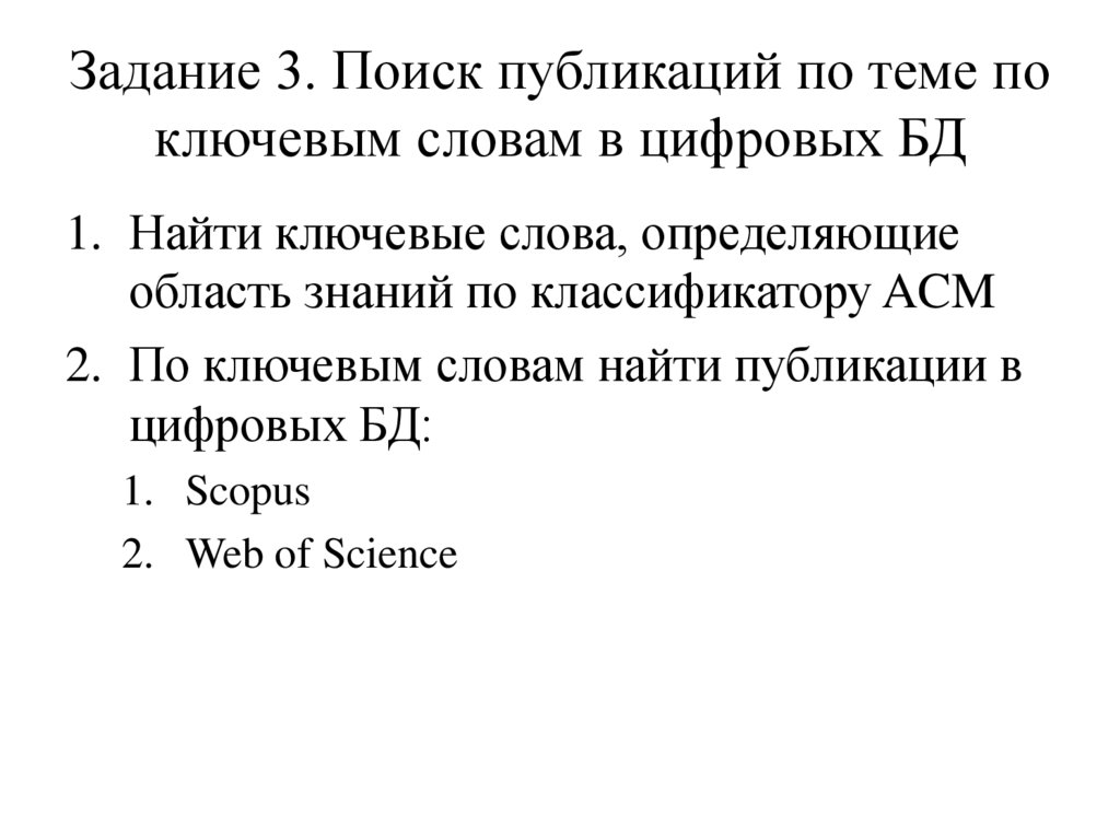 Задание 3. Поиск публикаций по теме поключевым словам в цифровых БД