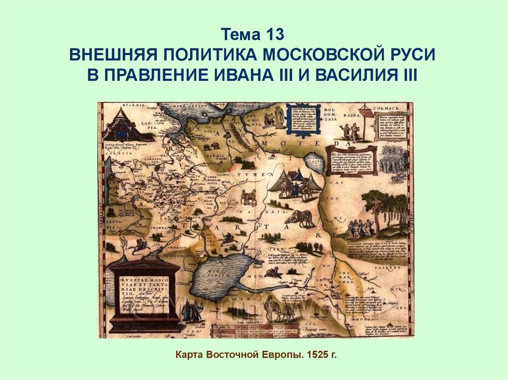 1. Тема 13 ВНЕШНЯЯ ПОЛИТИКА МОСКОВСКОЙ РУСИ В ПРАВЛЕНИЕ ИВАНА III И ВАСИЛИЯ III