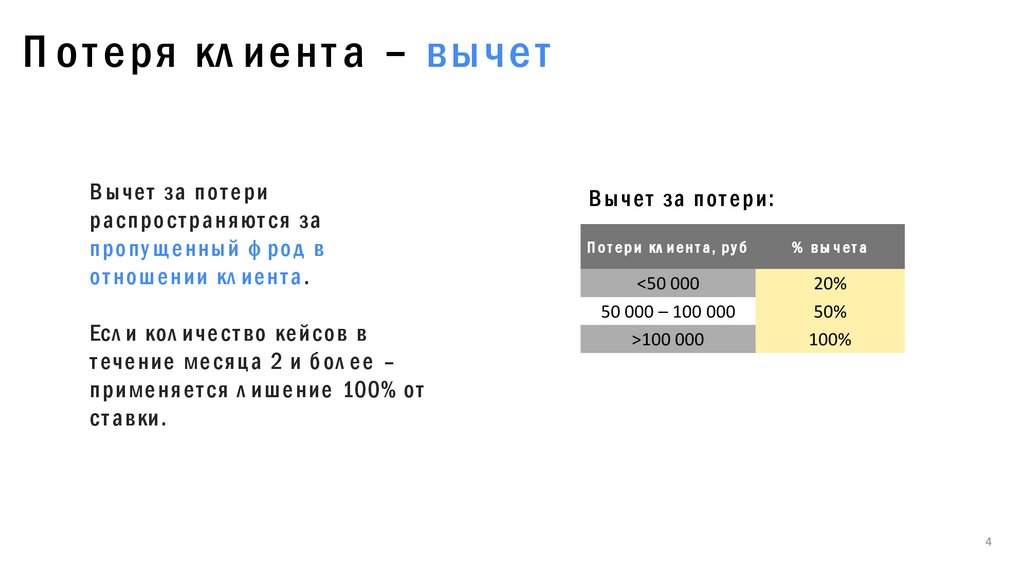 П от е ря кл ие нт а – вы че тВ ы чет за пот е ри