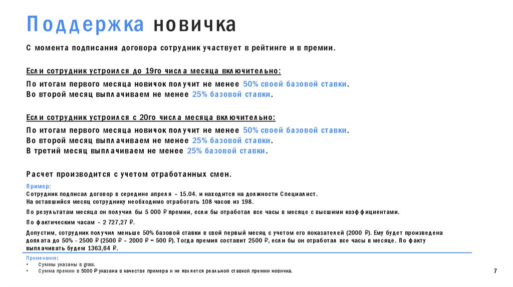 П о ит огам пе рвого ме ся ц а новичок пол у чит не ме не е 50% свое й базовой ст авки .