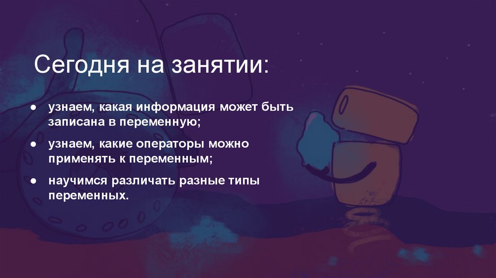 Сегодня на занятии:● узнаем, какая информация может быть