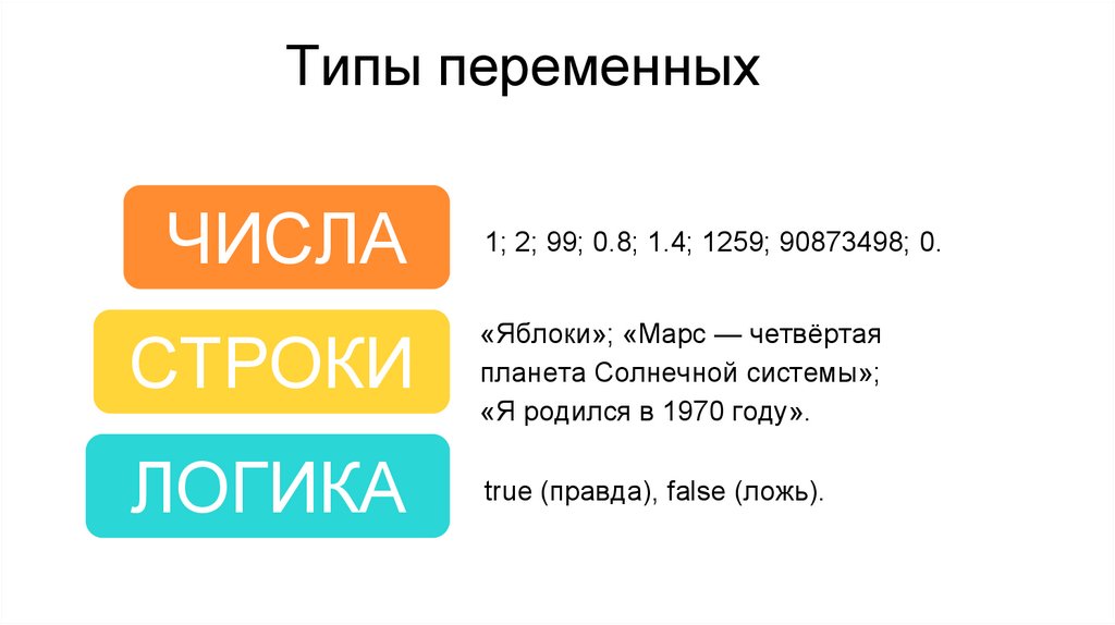 Типы переменныхЧИСЛА
