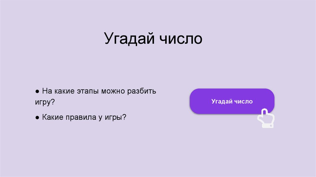Угадай число● На какие этапы можно разбить