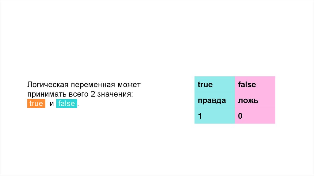 Логическая переменная можетпринимать всего 2 значения: