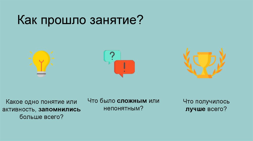 Как прошло занятие?Какое одно понятие или