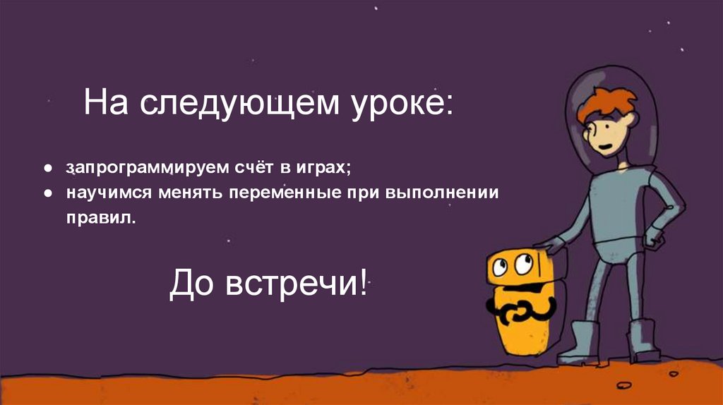 На следующем уроке:● запрограммируем счёт в играх;