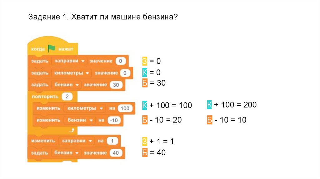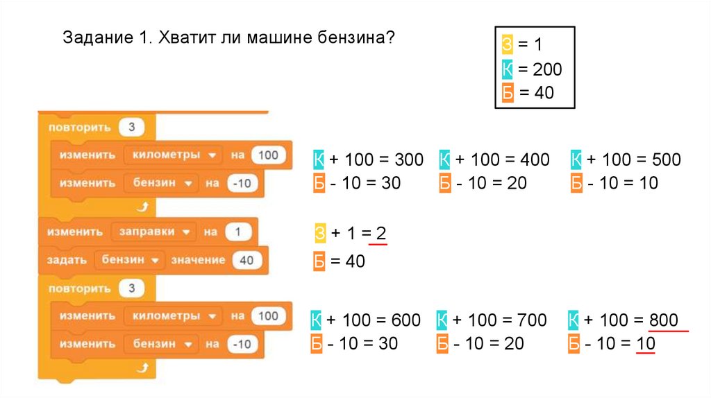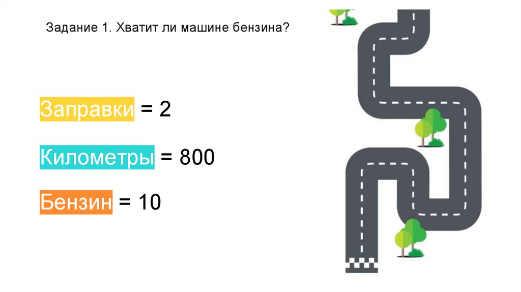 Задание 1. Хватит ли машине бензина?З=1