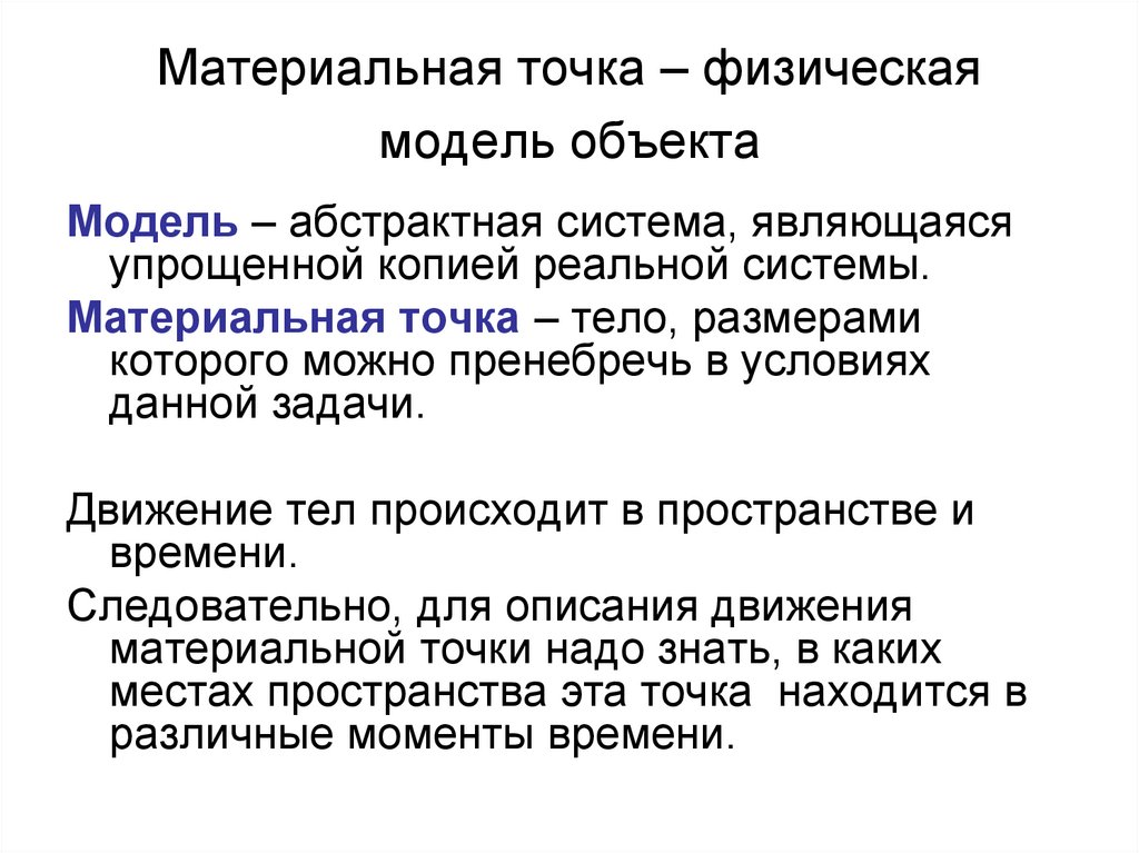 2. Материальная точка – физическая модель объекта