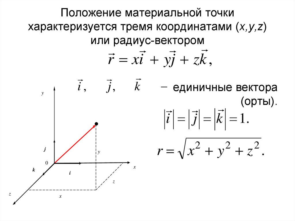 7. Положение материальной точки характеризуется тремя координатами (x,y,z) или радиус-вектором