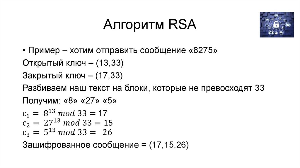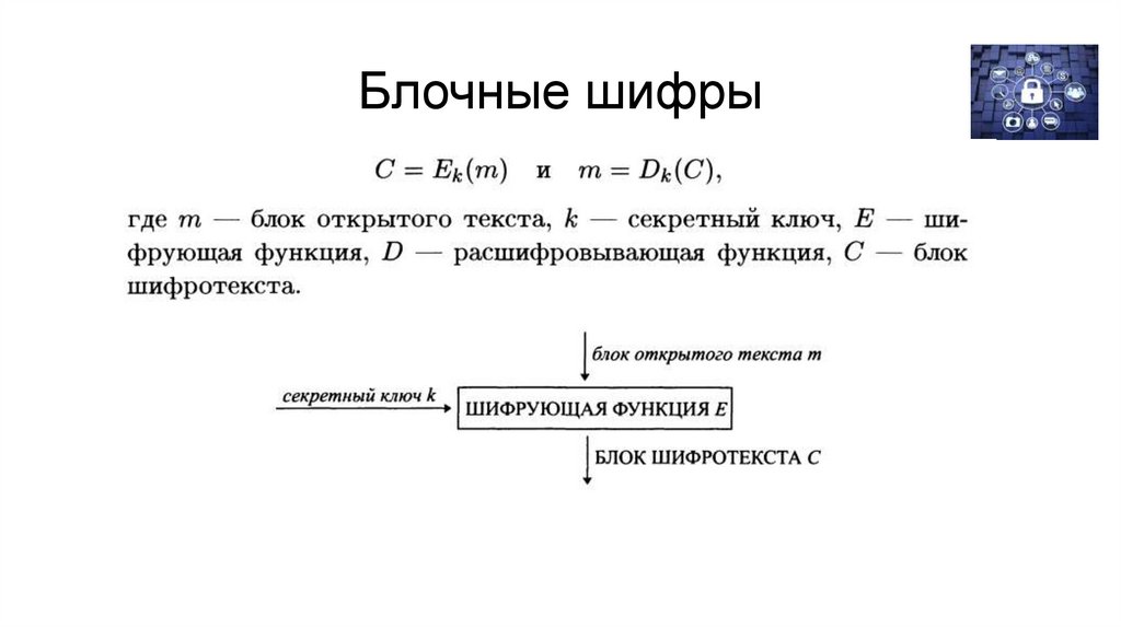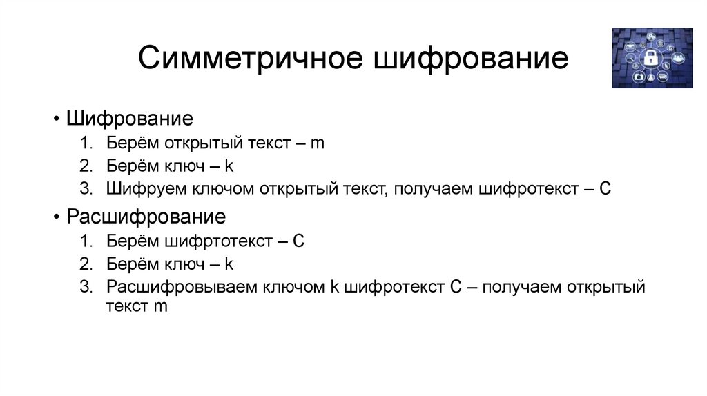 3. Расшифровываем ключом k шифротекст C – получаем открытый