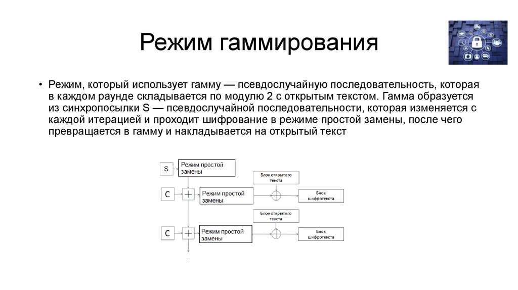 4.Полученный шифротекст поступает в качестве синхропосылки
