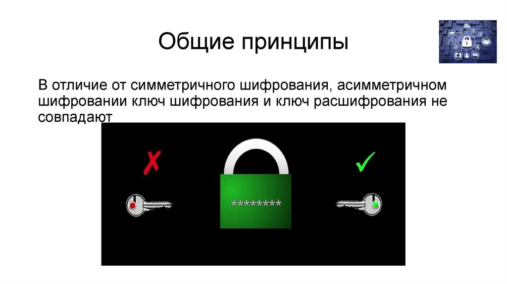 Общие принципыВ отличие от симметричного шифрования, асимметричном