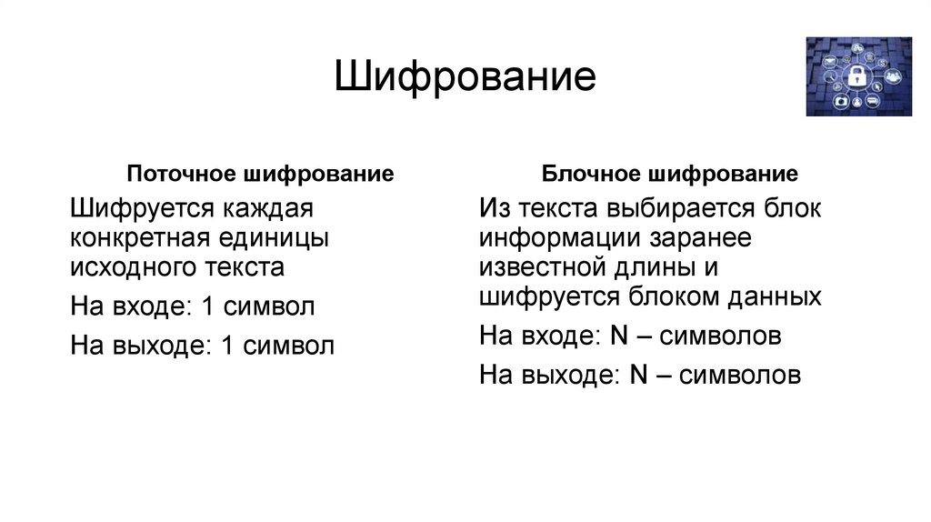 Основная терминологияАлгоритм шифрования – перевод открытого текста в