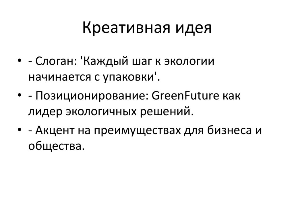 Креативная идея• - Слоган: 'Каждый шаг к экологии