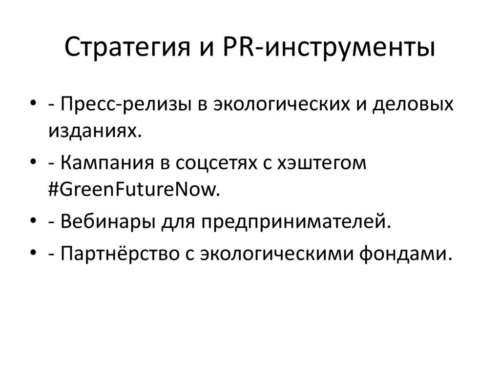 Стратегия и PR-инструменты• - Пресс-релизы в экологических и деловых