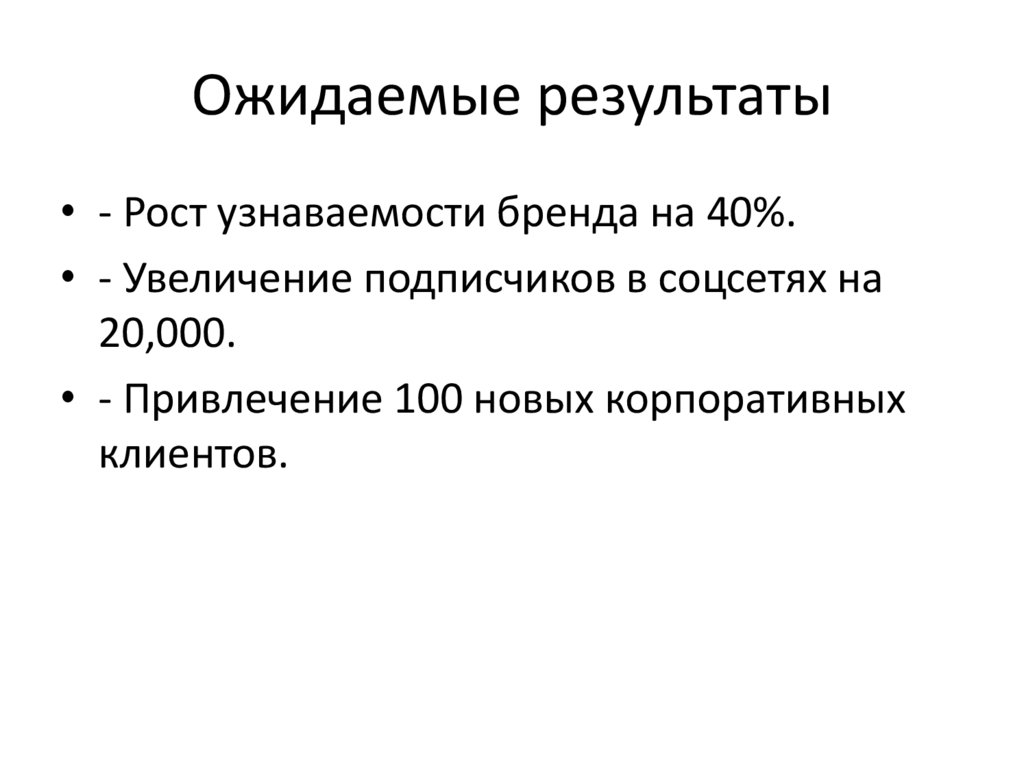 Ожидаемые результаты• - Рост узнаваемости бренда на 40%.