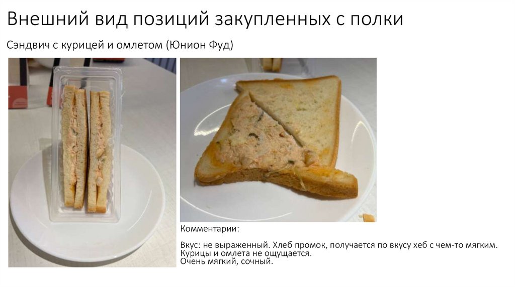 Внешний вид позиций закупленных с полкиСэндвич с курицей и омлетом (Юнион Фуд)
