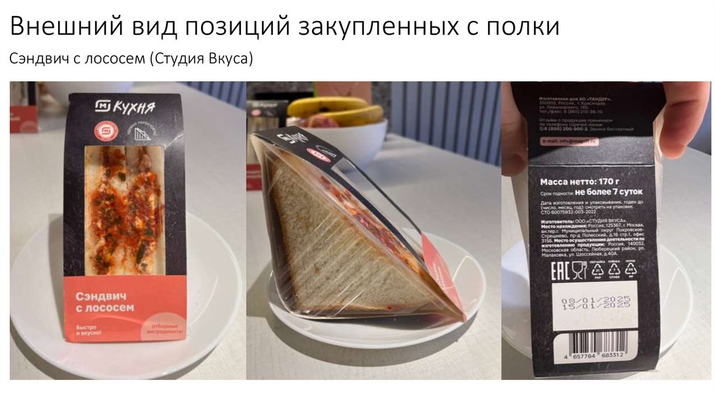 Внешний вид позиций закупленных с полкиСэндвич с лососем (Студия Вкуса)