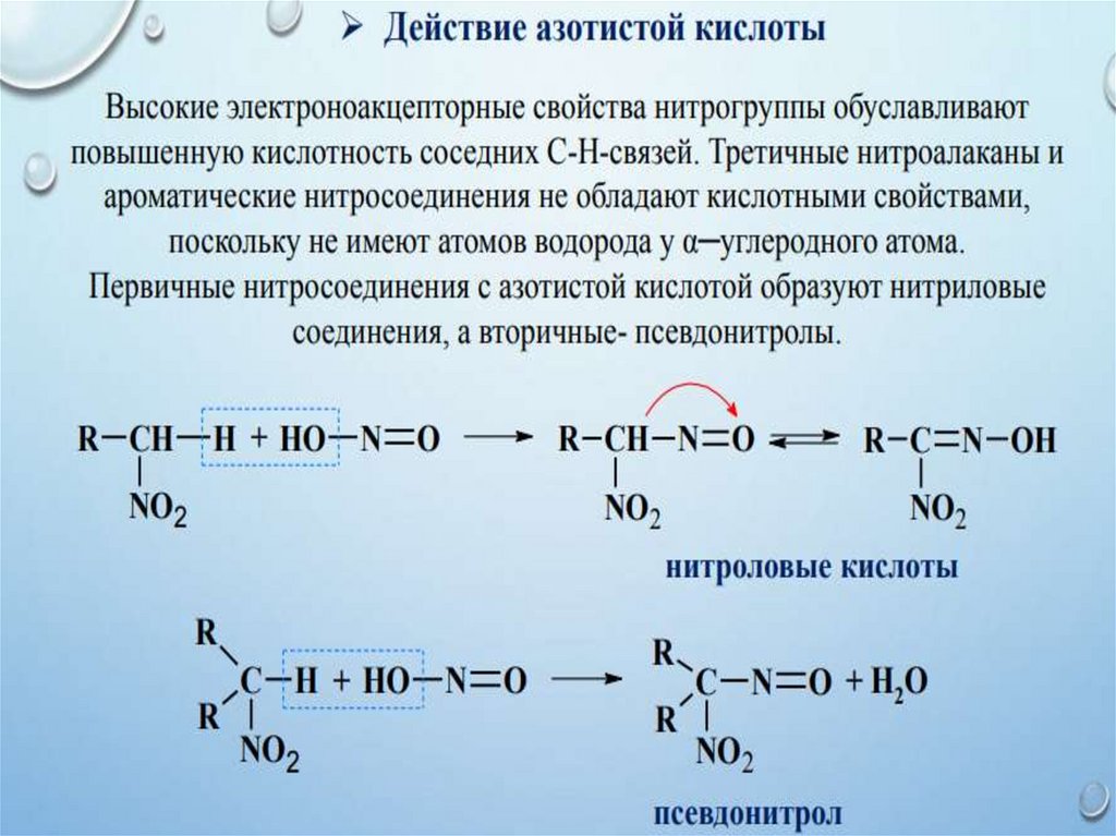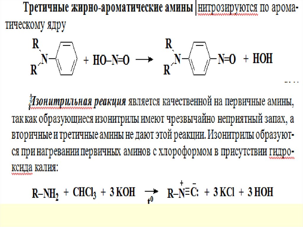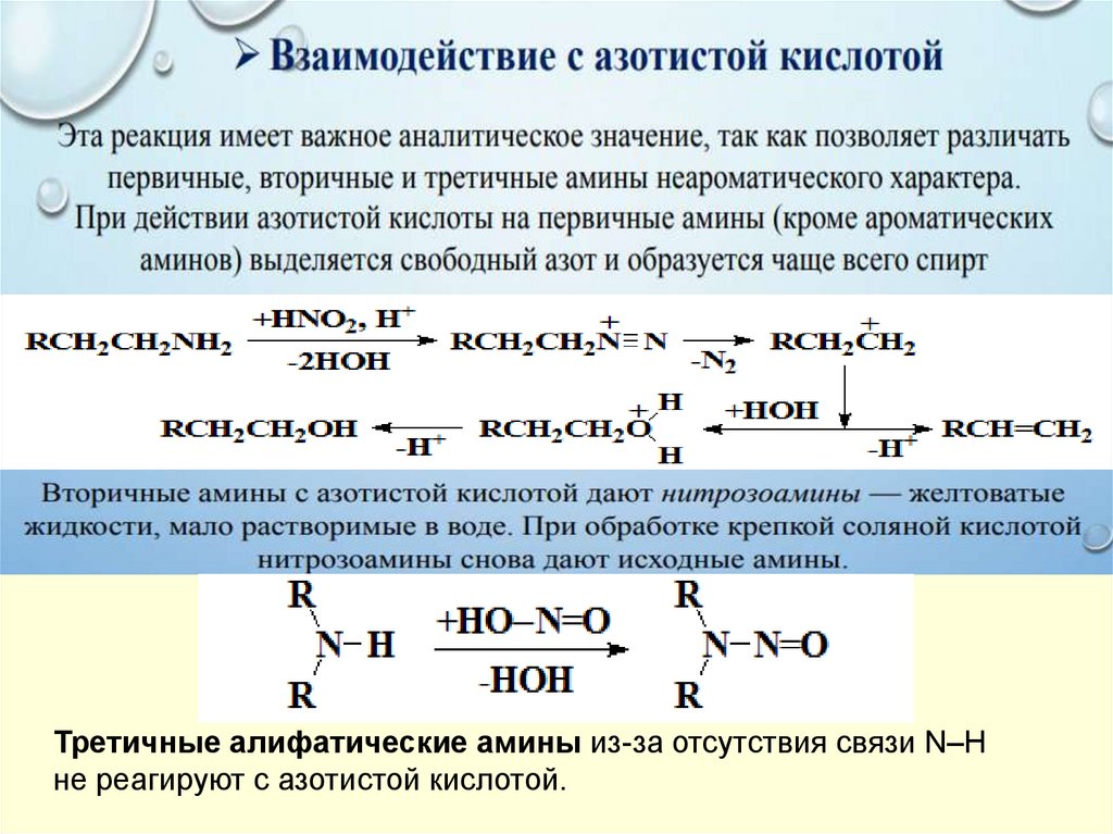 Третичные алифатические амины из-за отсутствия связи N–Hне реагируют с азотистой кислотой.