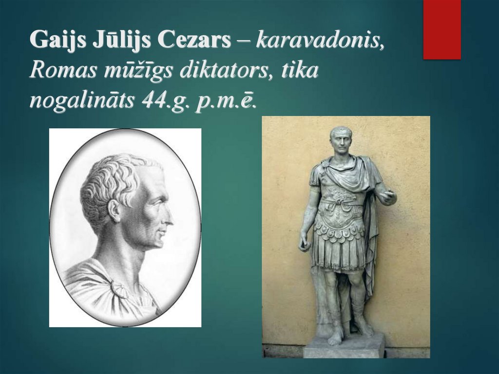 Gaijs Jūlijs Cezars – karavadonis,Romas mūžīgs diktators, tika