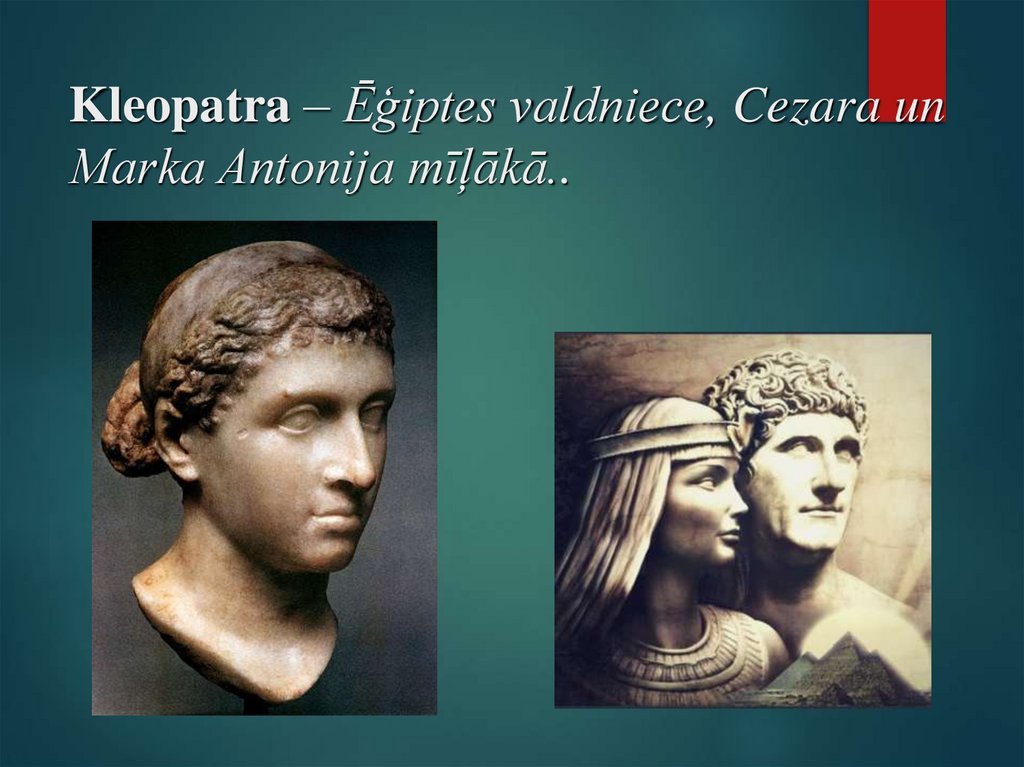 Kleopatra – Ēģiptes valdniece, Cezara unMarka Antonija mīļākā..