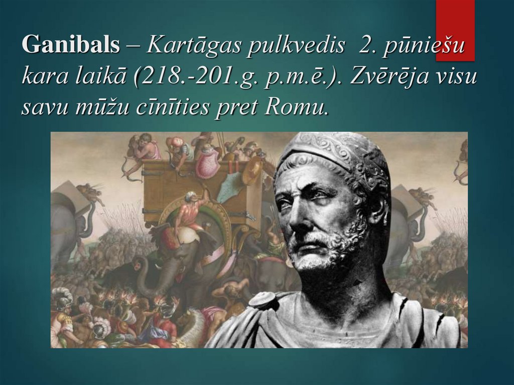 Ganibals – Kartāgas pulkvedis 2. pūniešukara laikā (218.-201.g. p.m.ē.). Zvērēja visu
