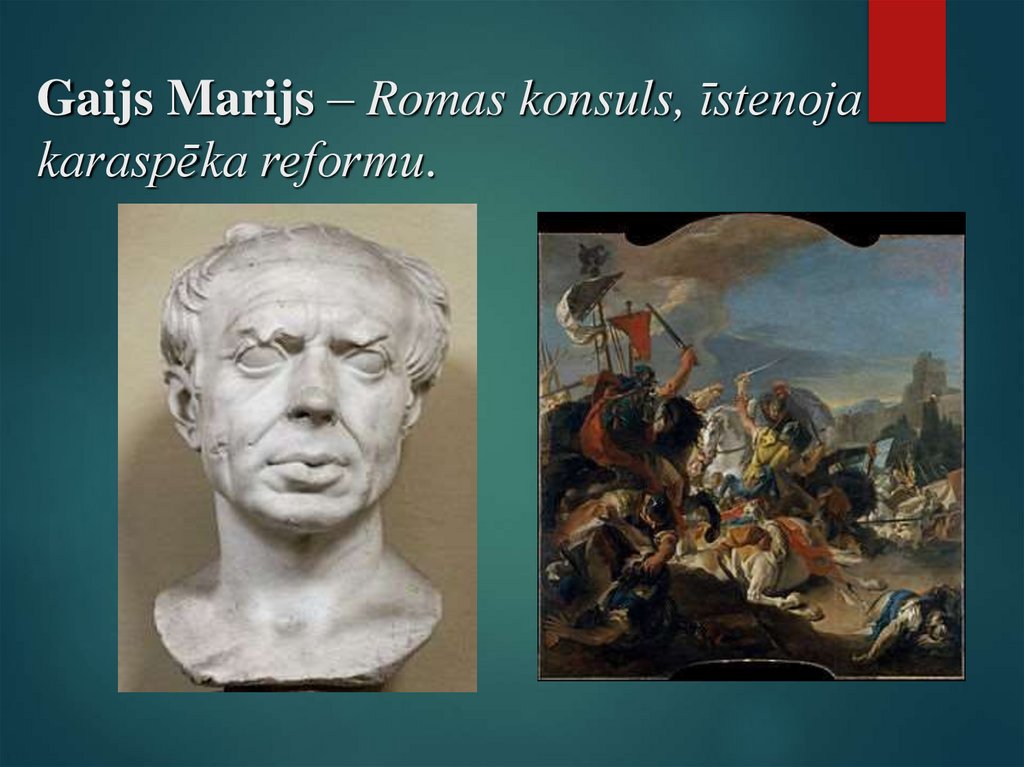 Gaijs Marijs – Romas konsuls, īstenojakaraspēka reformu.