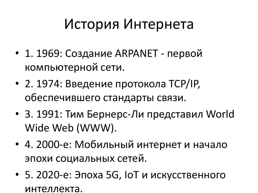 История Интернета• 1. 1969: Создание ARPANET - первой