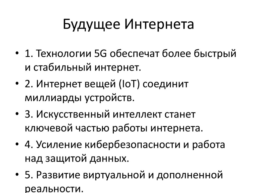 Будущее Интернета• 1. Технологии 5G обеспечат более быстрый