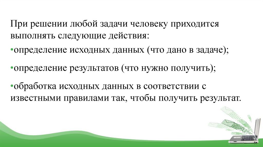 При решении любой задачи человеку приходитсявыполнять следующие действия: