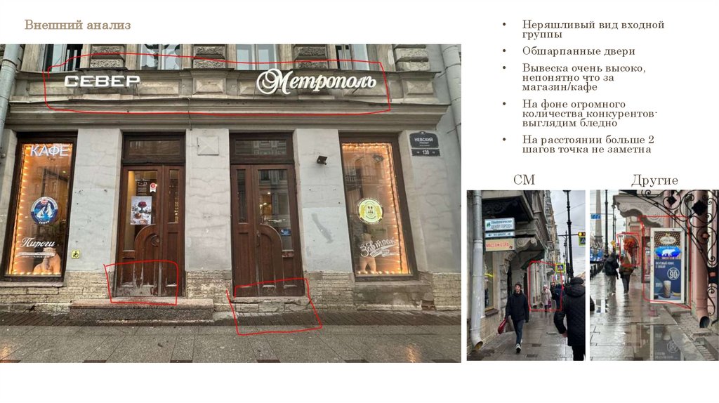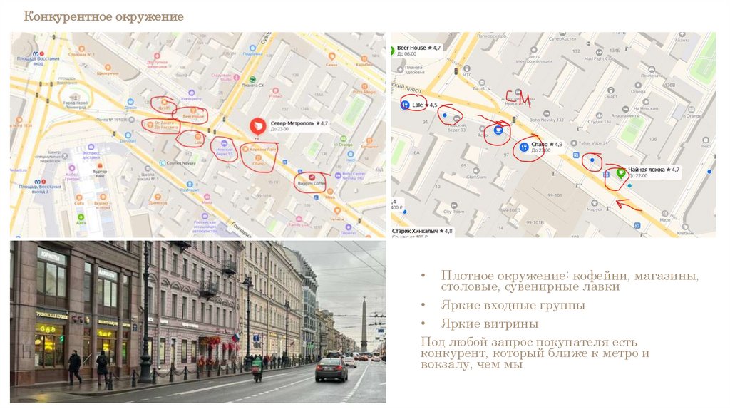 Конкурентное окружениеПлотное окружение: кофейни, магазины,