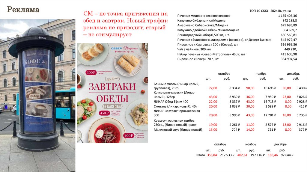 • Кулинария, на которую сейчас направлена реклама, за углом, незаметна сразу