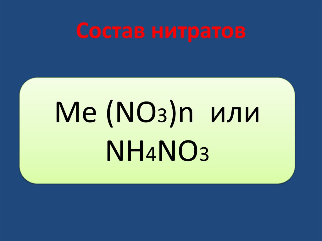 Состав нитратовMe (NO3)n или