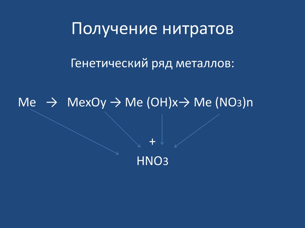 Получение нитратовГенетический ряд металлов: