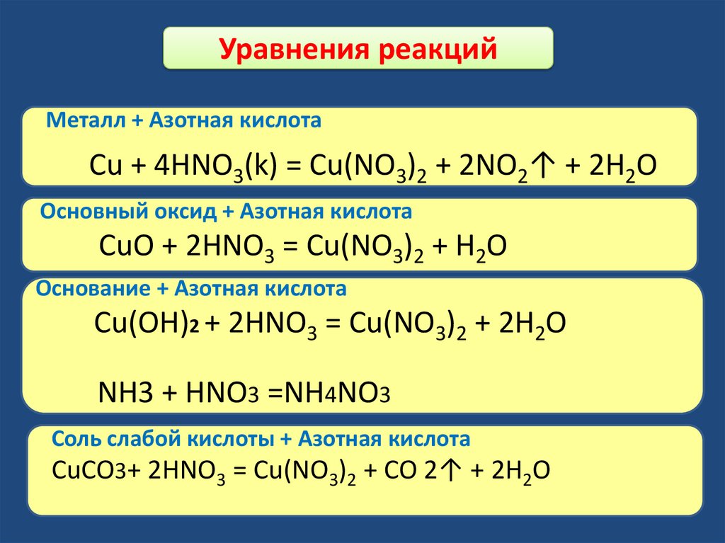 Уравнения реакцийМеталл + Азотная кислота