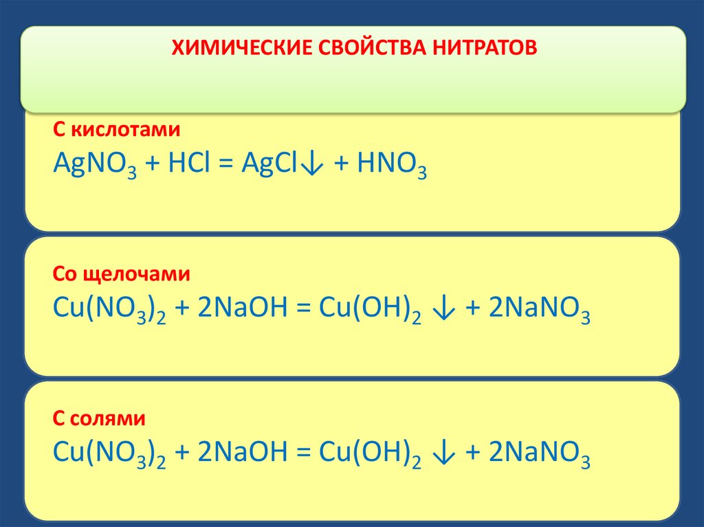 ХИМИЧЕСКИЕ СВОЙСТВА НИТРАТОВС кислотами