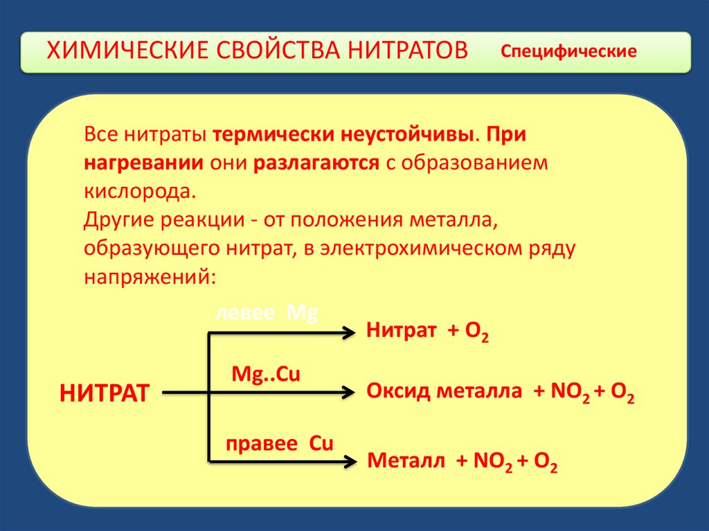 ХИМИЧЕСКИЕ СВОЙСТВА НИТРАТОВСпецифические