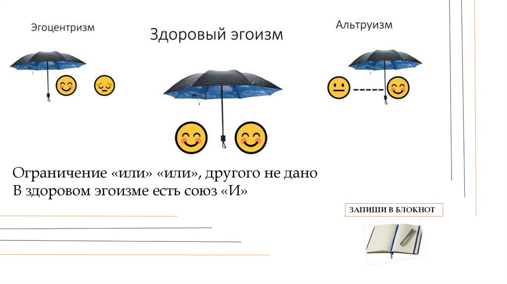 Ограничение «или» «или», другого не даноВ здоровом эгоизме есть союз «И»