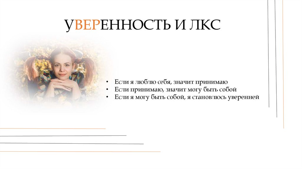 УВЕРЕННОСТЬ И ЛКС• Если я люблю себя, значит принимаю
