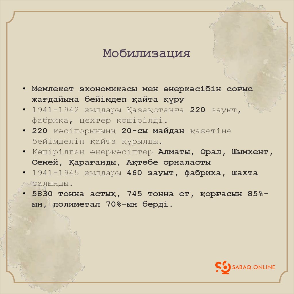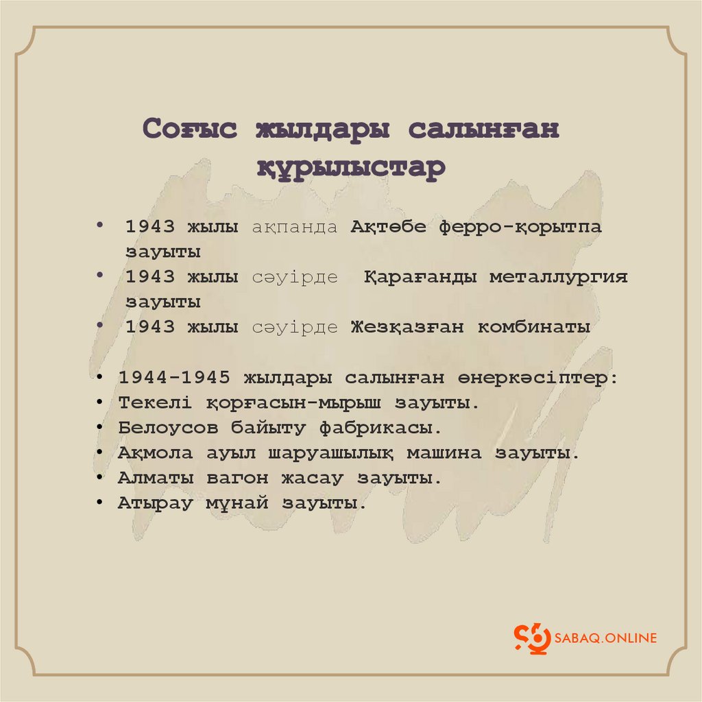 • 1941-1942 жылдары Қазақстанға 220 зауыт,