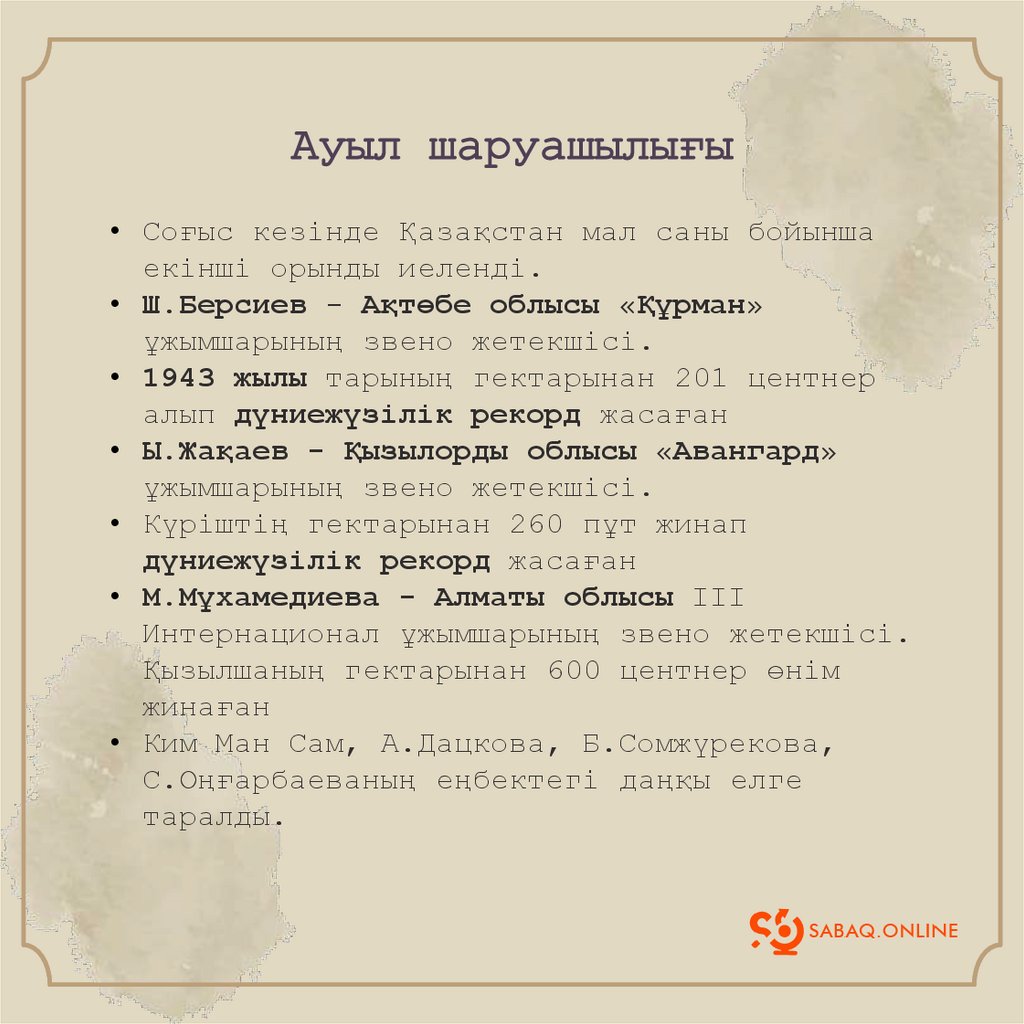 • Cоғыс кезінде Қазақстан мал саны бойыншаекінші орынды иеленді.