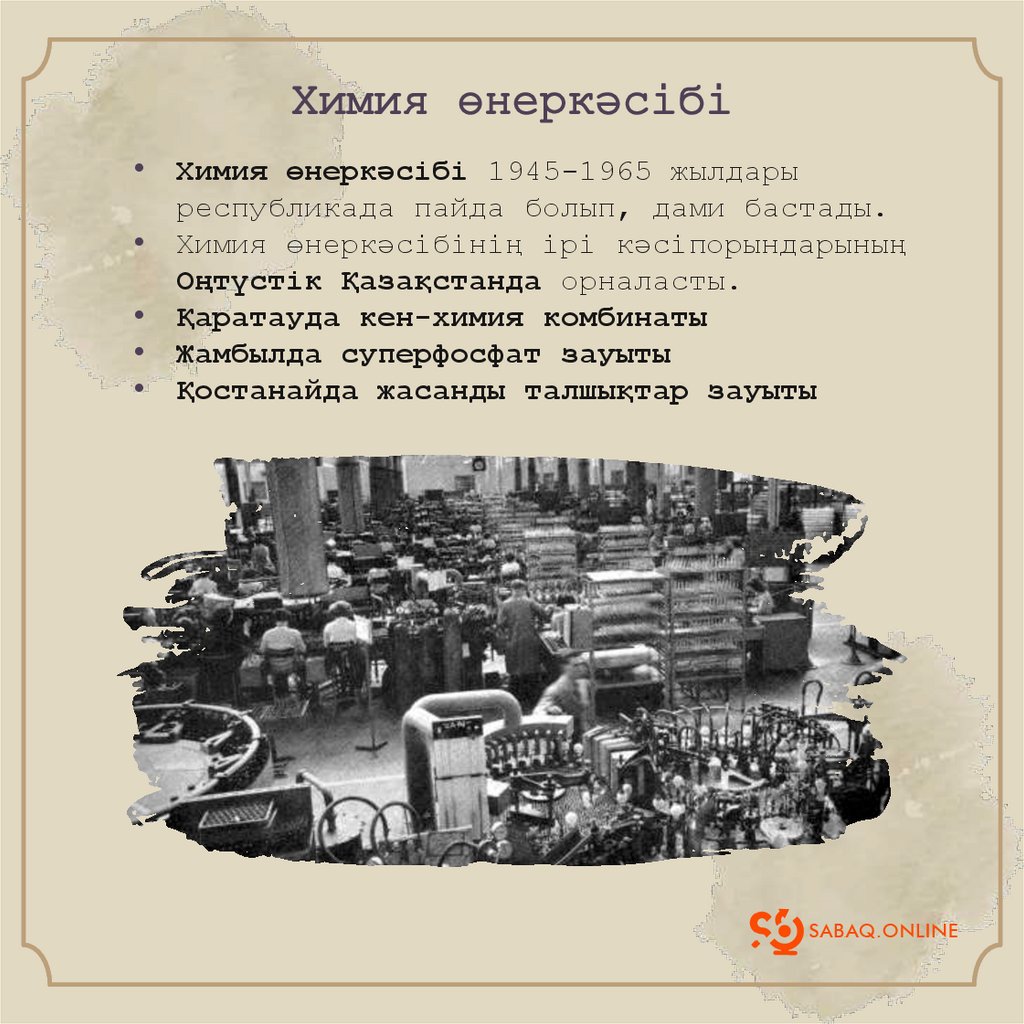 • Көшірілген өнеркәсіптер Алматы, Орал, Шымкент,