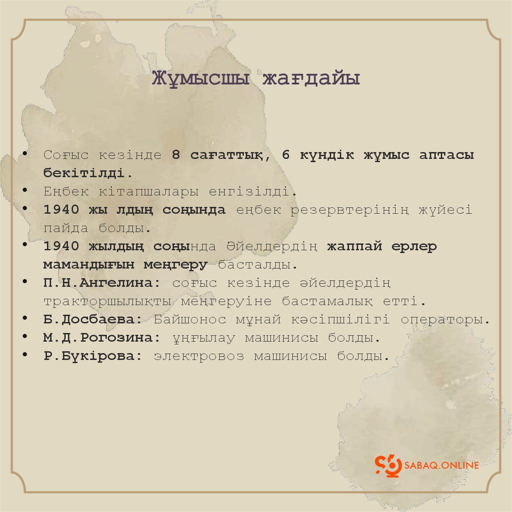 • Соғыс кезінде 8 сағаттық, 6 күндік жұмыс аптасыбекітілді.