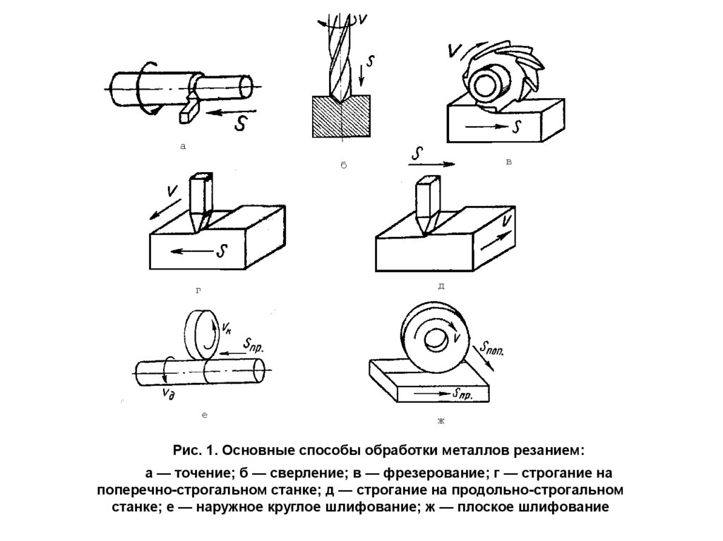 Рис. 1. Основные способы обработки металлов резанием: