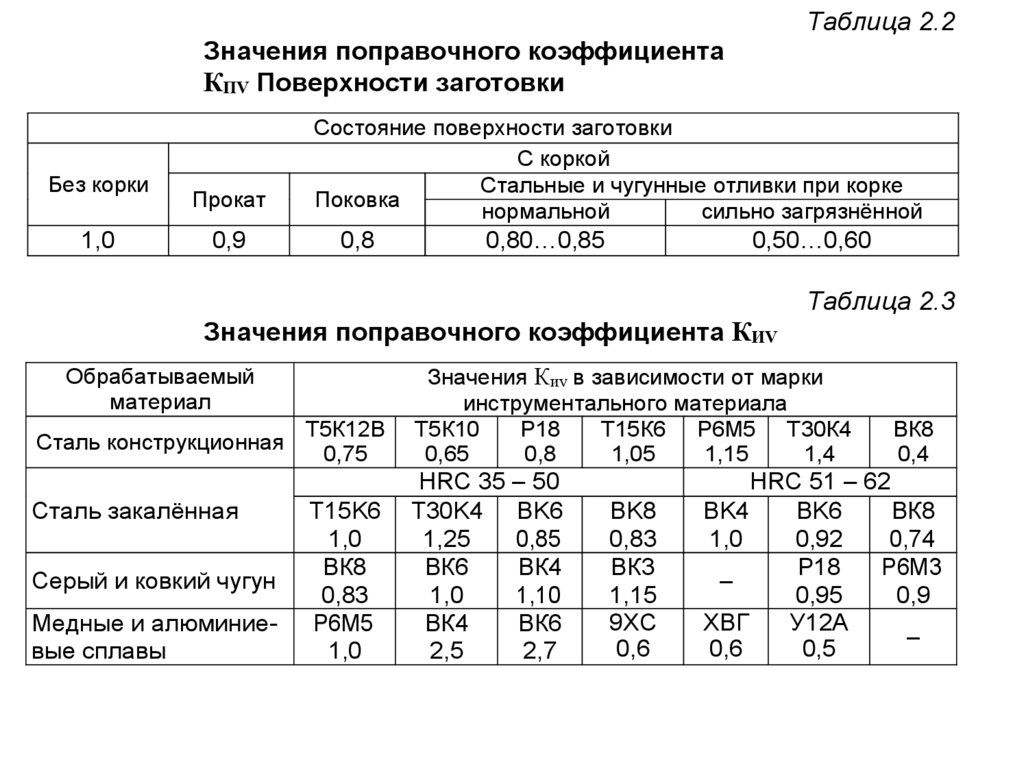 инструмента, мин; S – подача, мм/об; Kv – корректирующий коэффициент m, x, y –