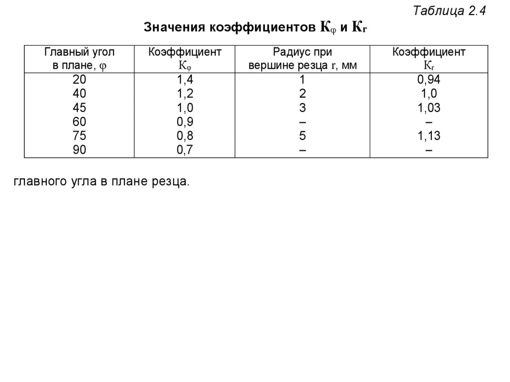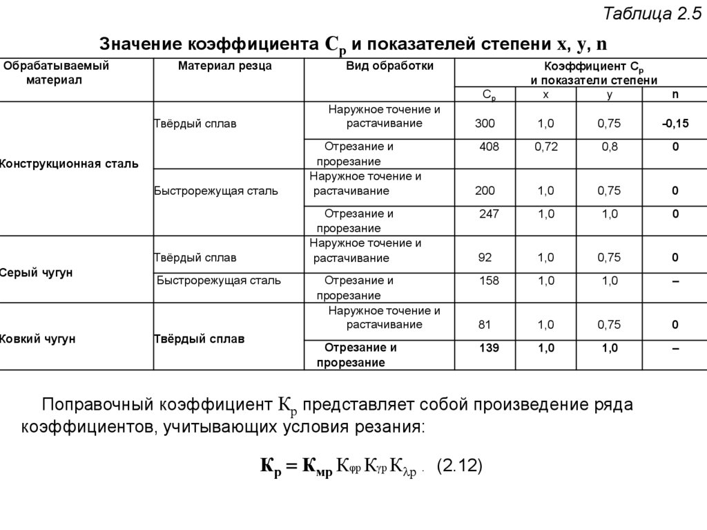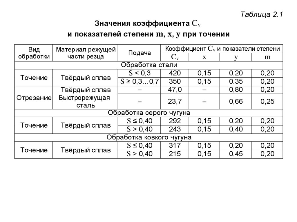 резания приведены в табл. 2.5.