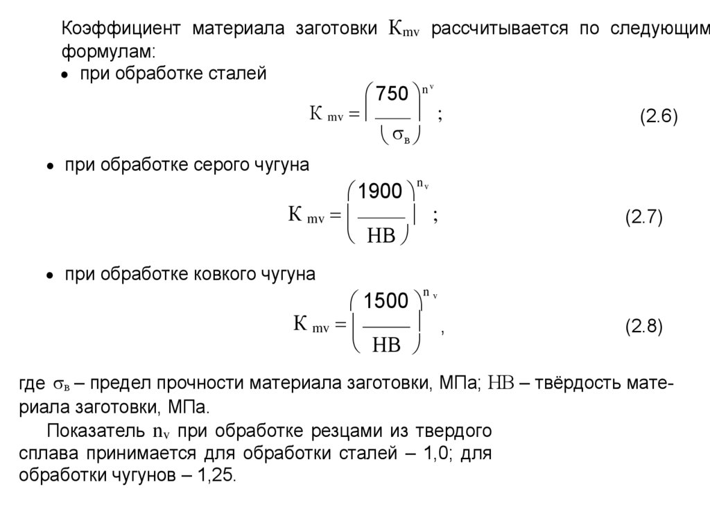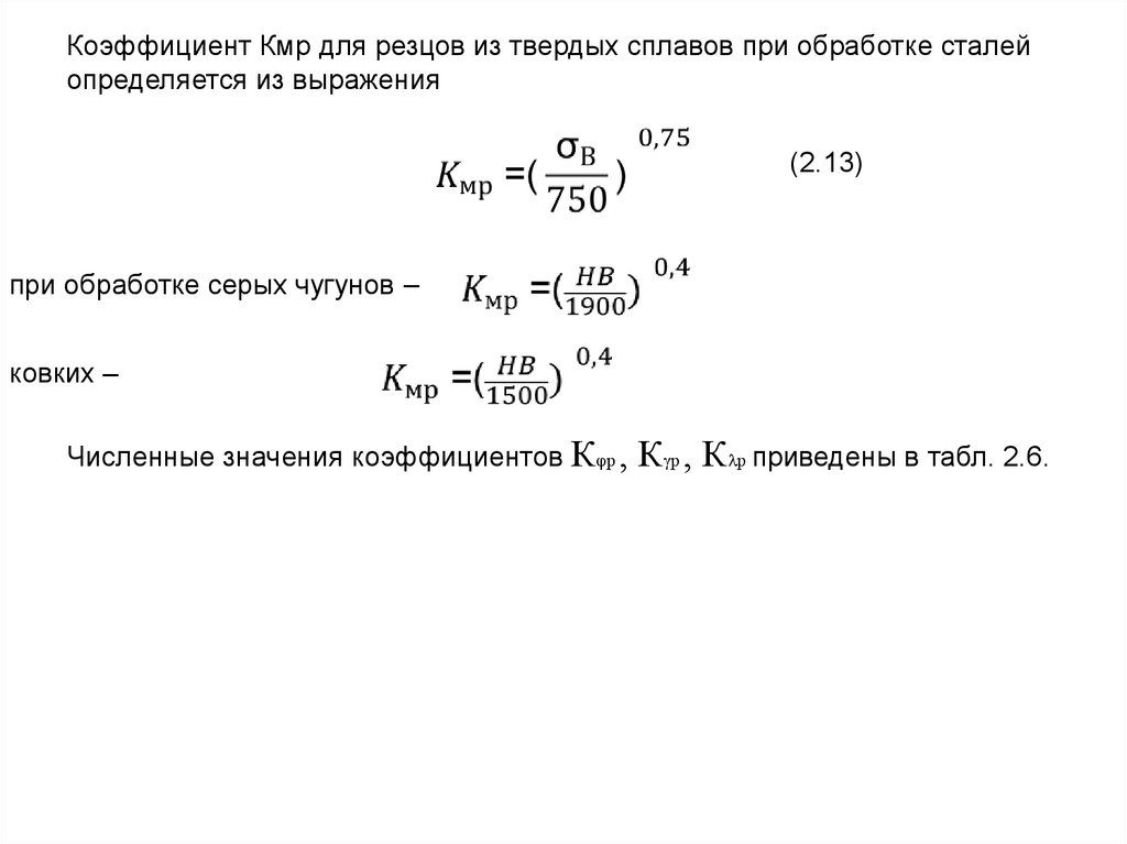 Коэффициент Кмр для резцов из твердых сплавов при обработке сталейопределяется из выражения