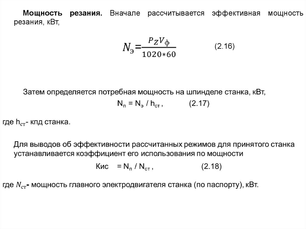 Мощность резания. Вначале рассчитывается эффективная мощностьрезания, кВт,