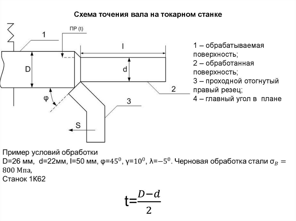 Схема точения вала на токарном станке1 – обрабатываемая